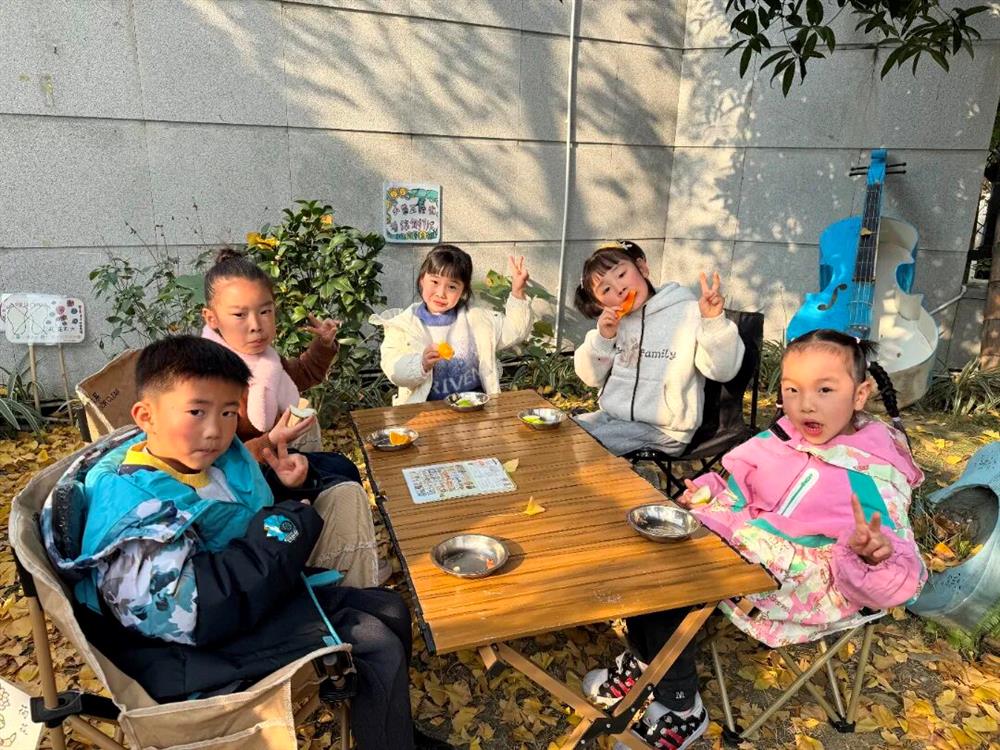 吃饱喝足后,大家或唱歌跳舞、或共读绘本、或结伴游戏,银杏叶随风飘落,为这场温馨的围炉派对增添了别样诗意,每一幕都藏着童真与欢喜。